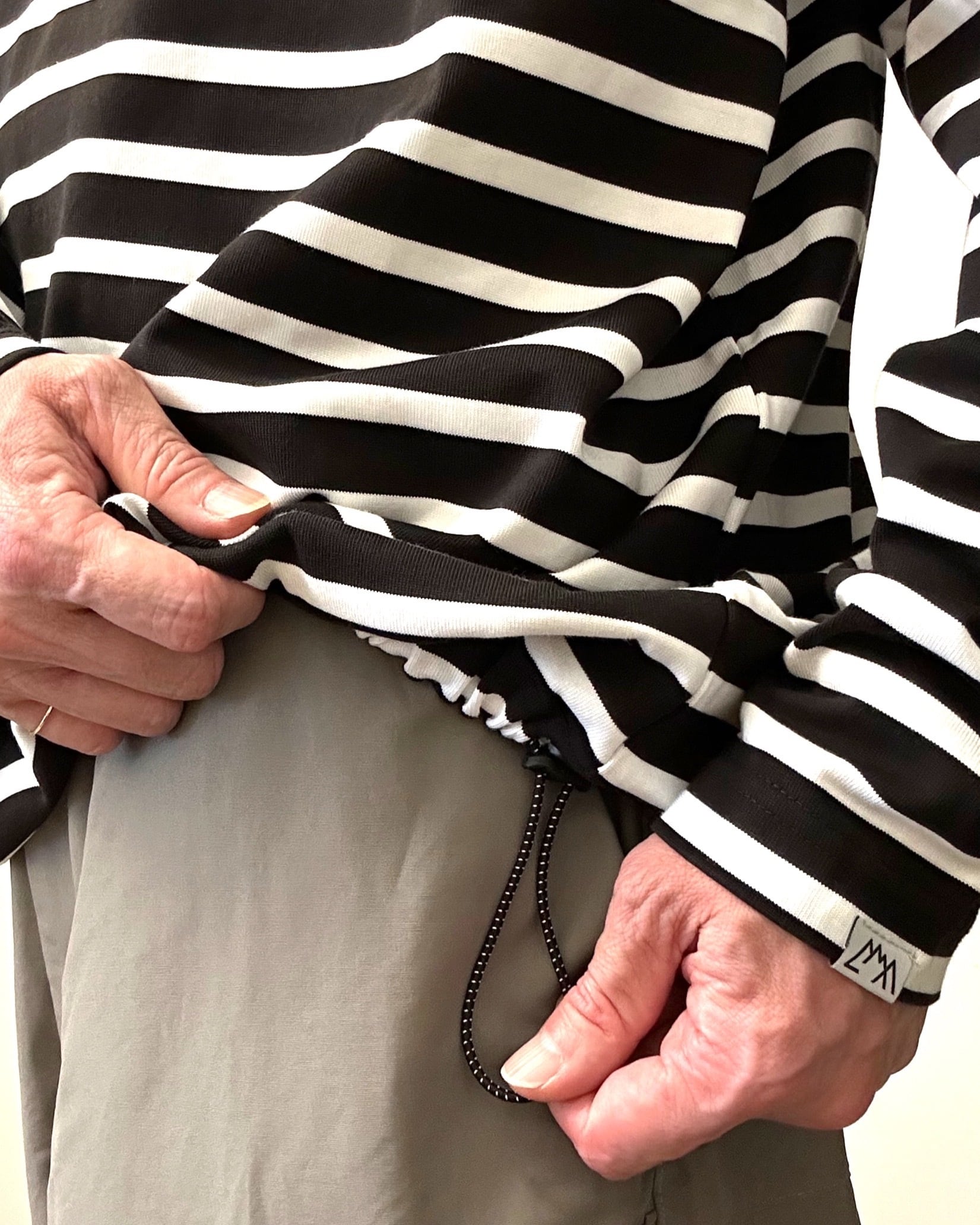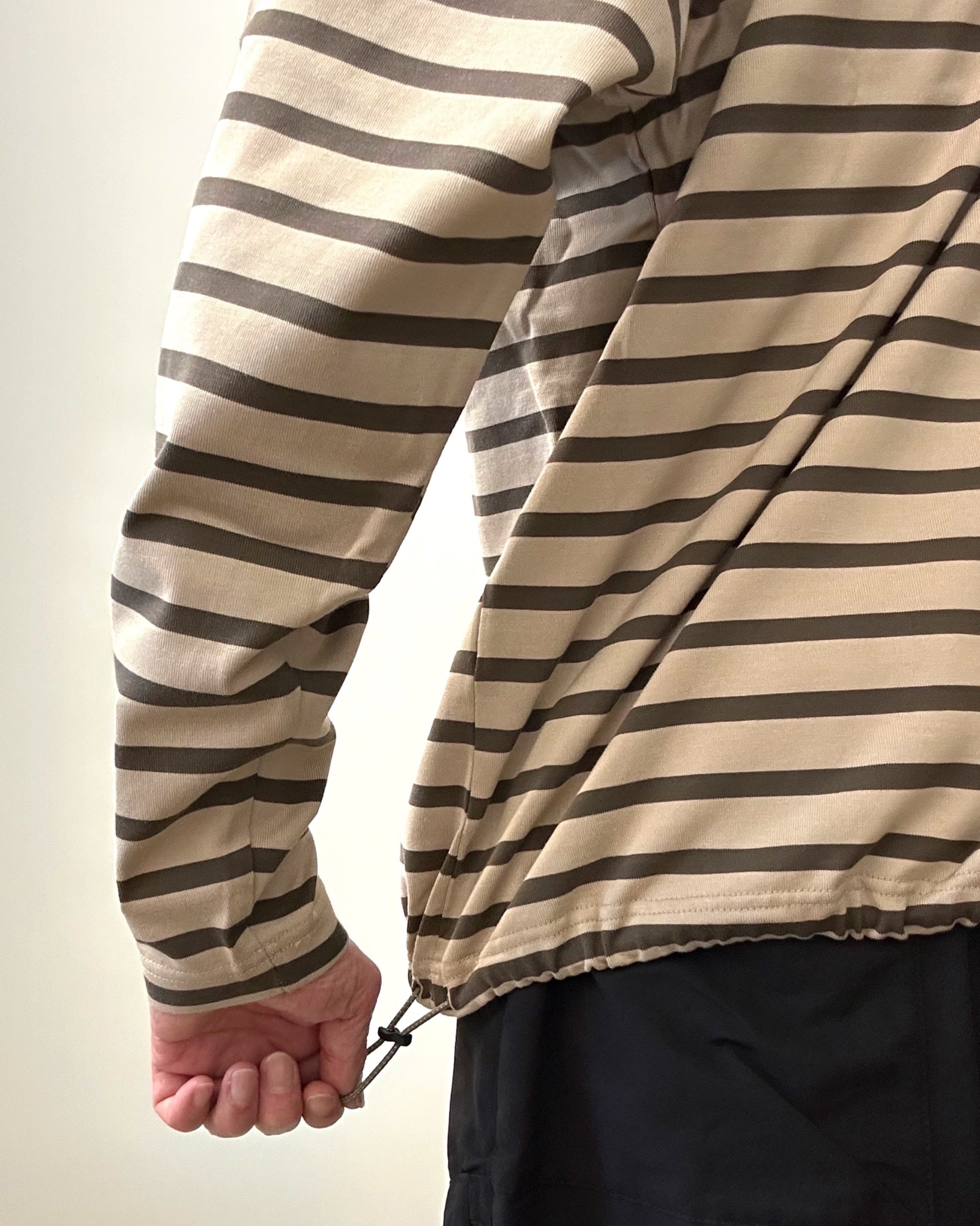 裾のドローコードは洗濯機で気を遣わず洗えるようゴムパーツ使用になっている。