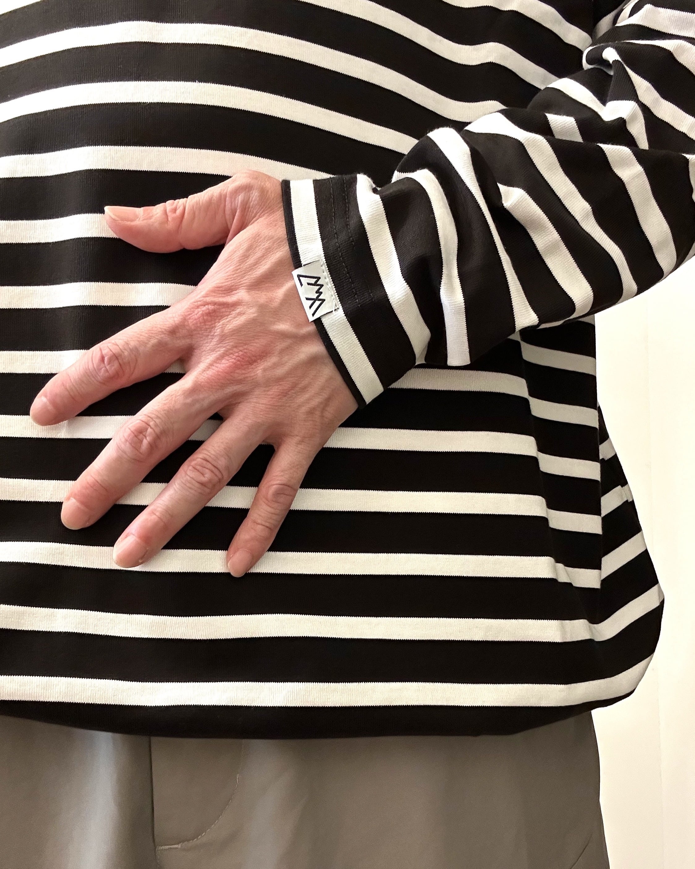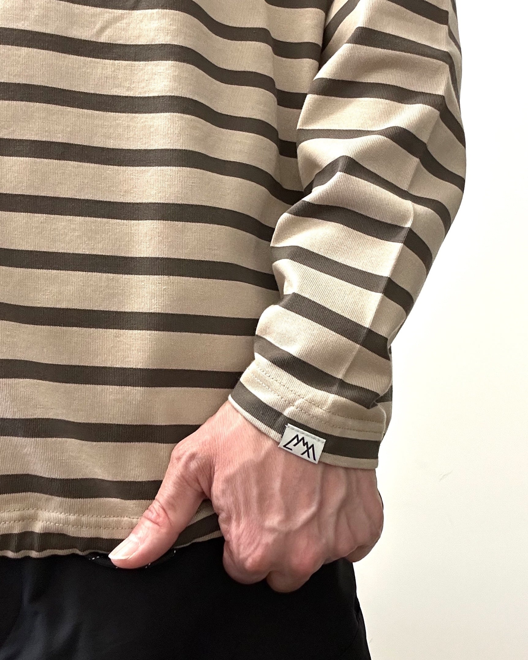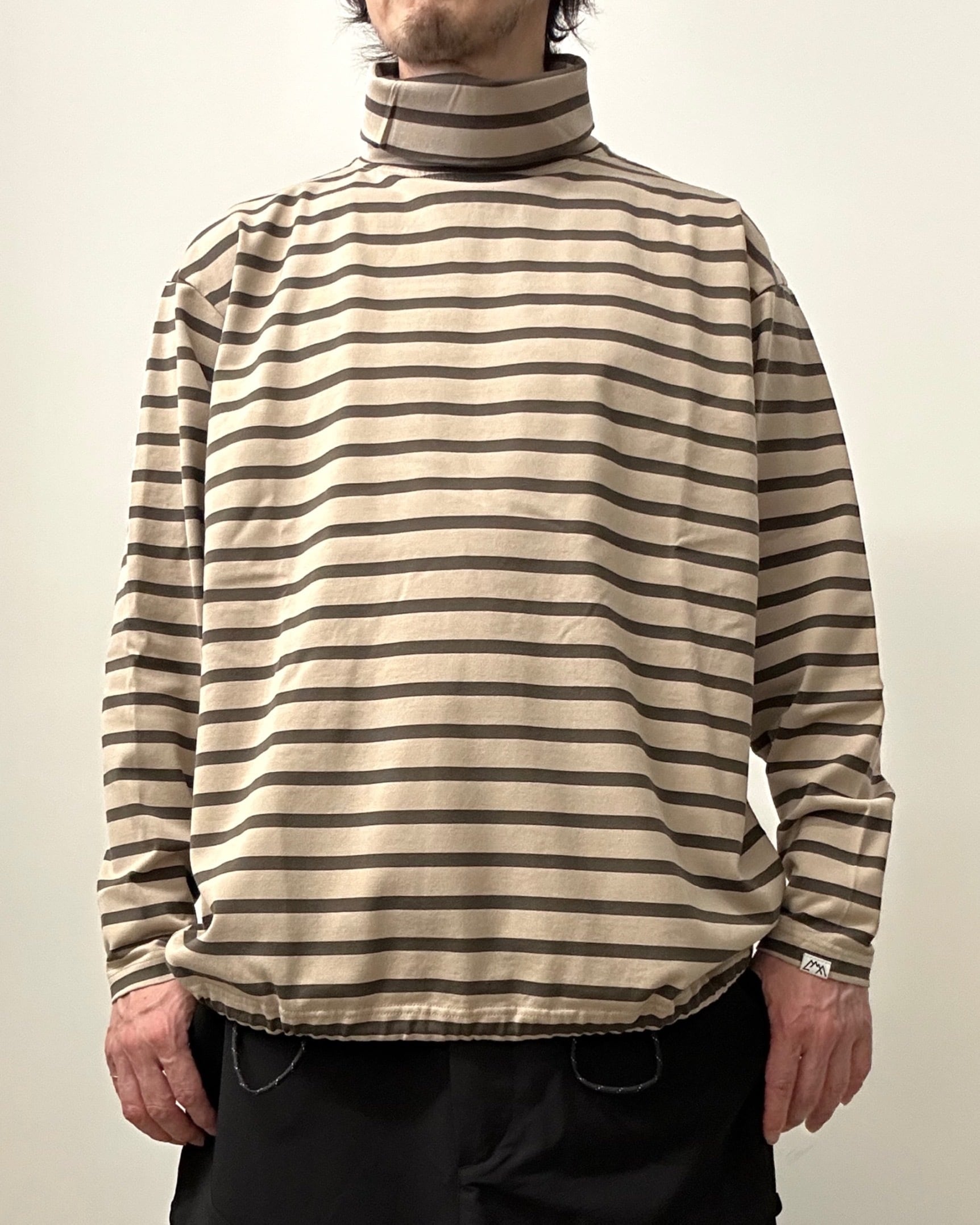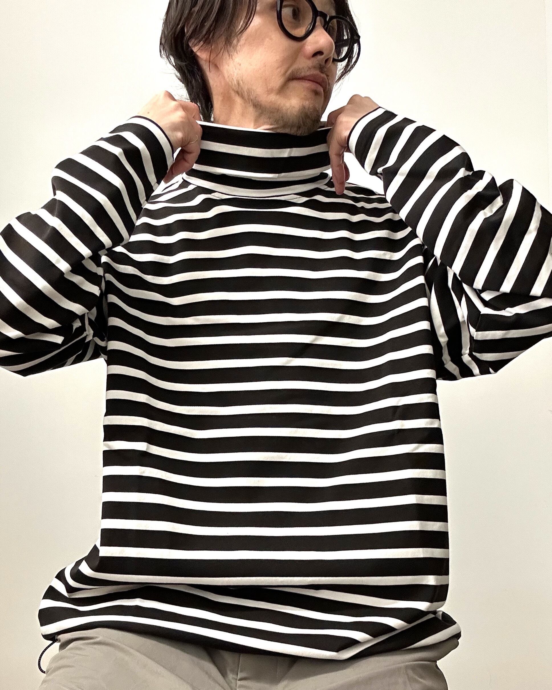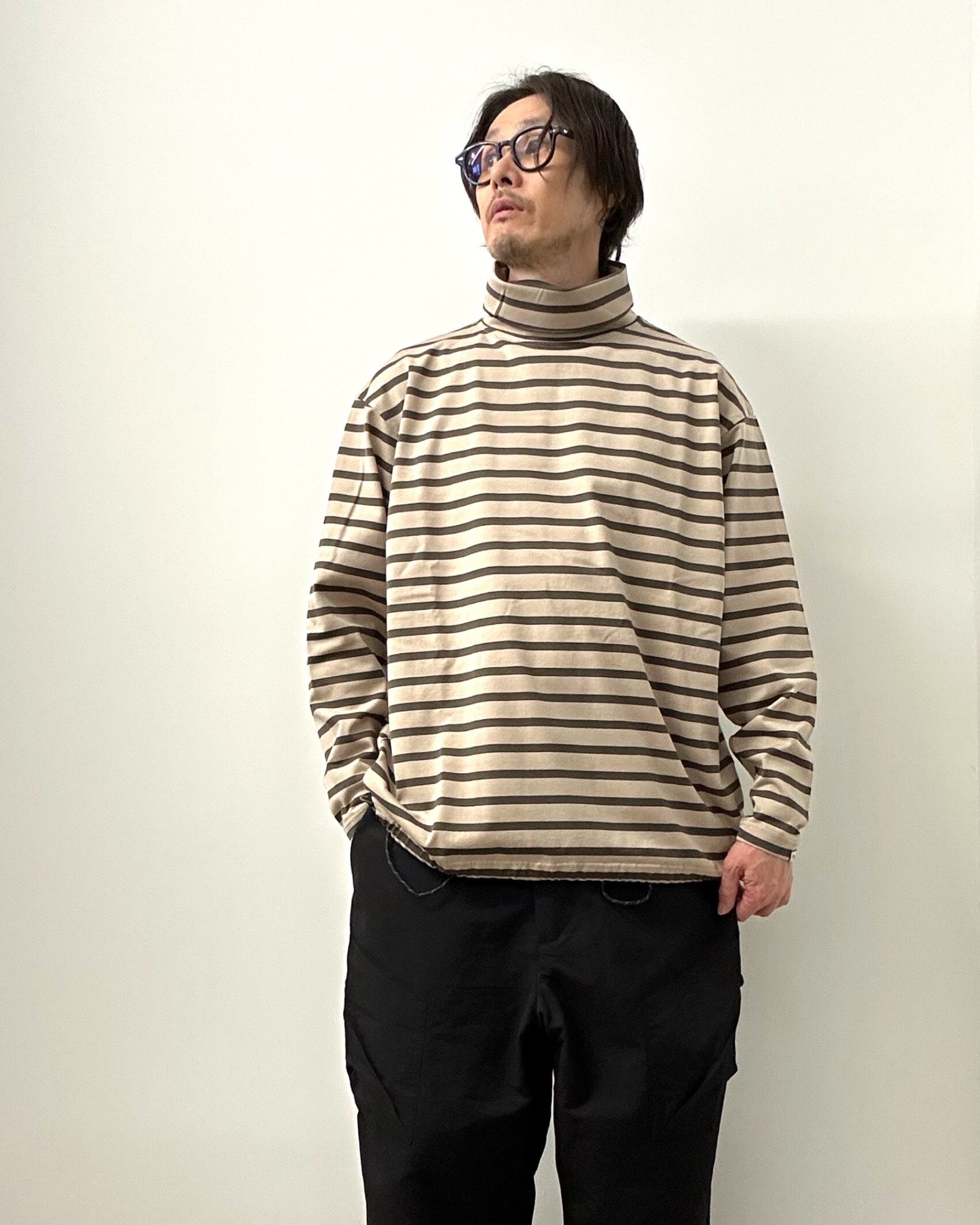 肌寒くなった際に着たくなるタートルネックのボーダーLS Tee。