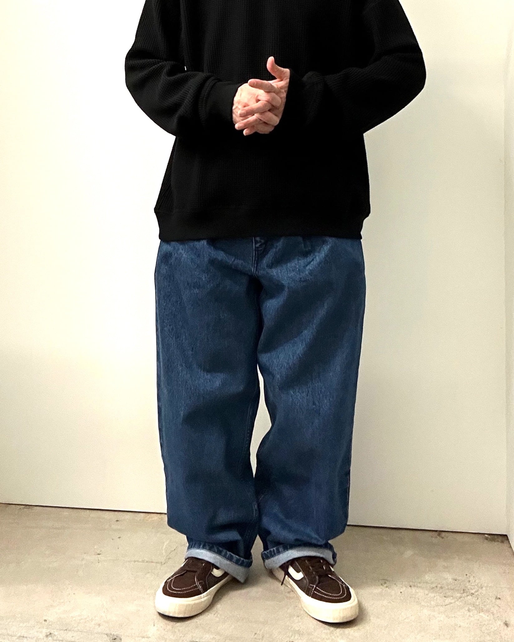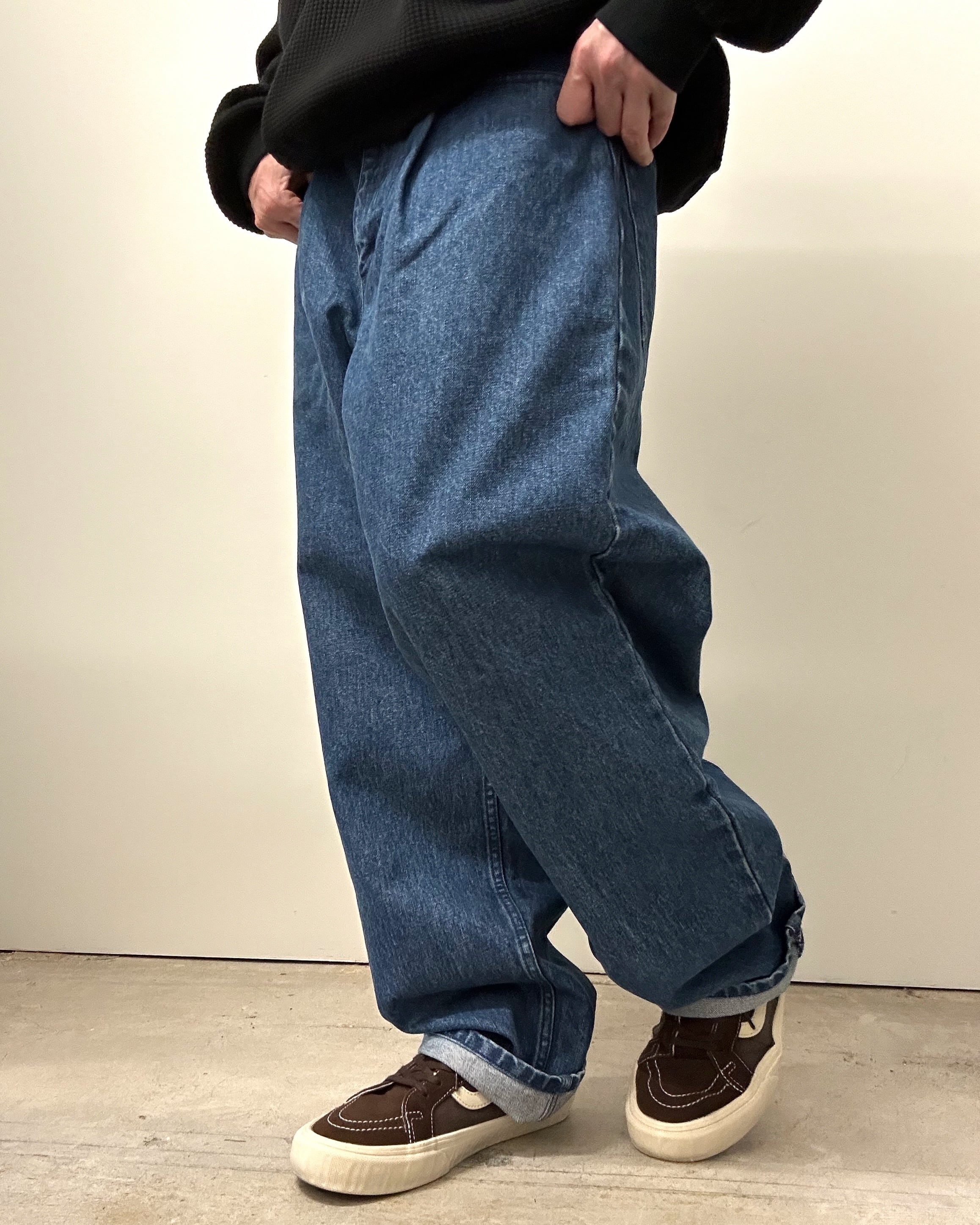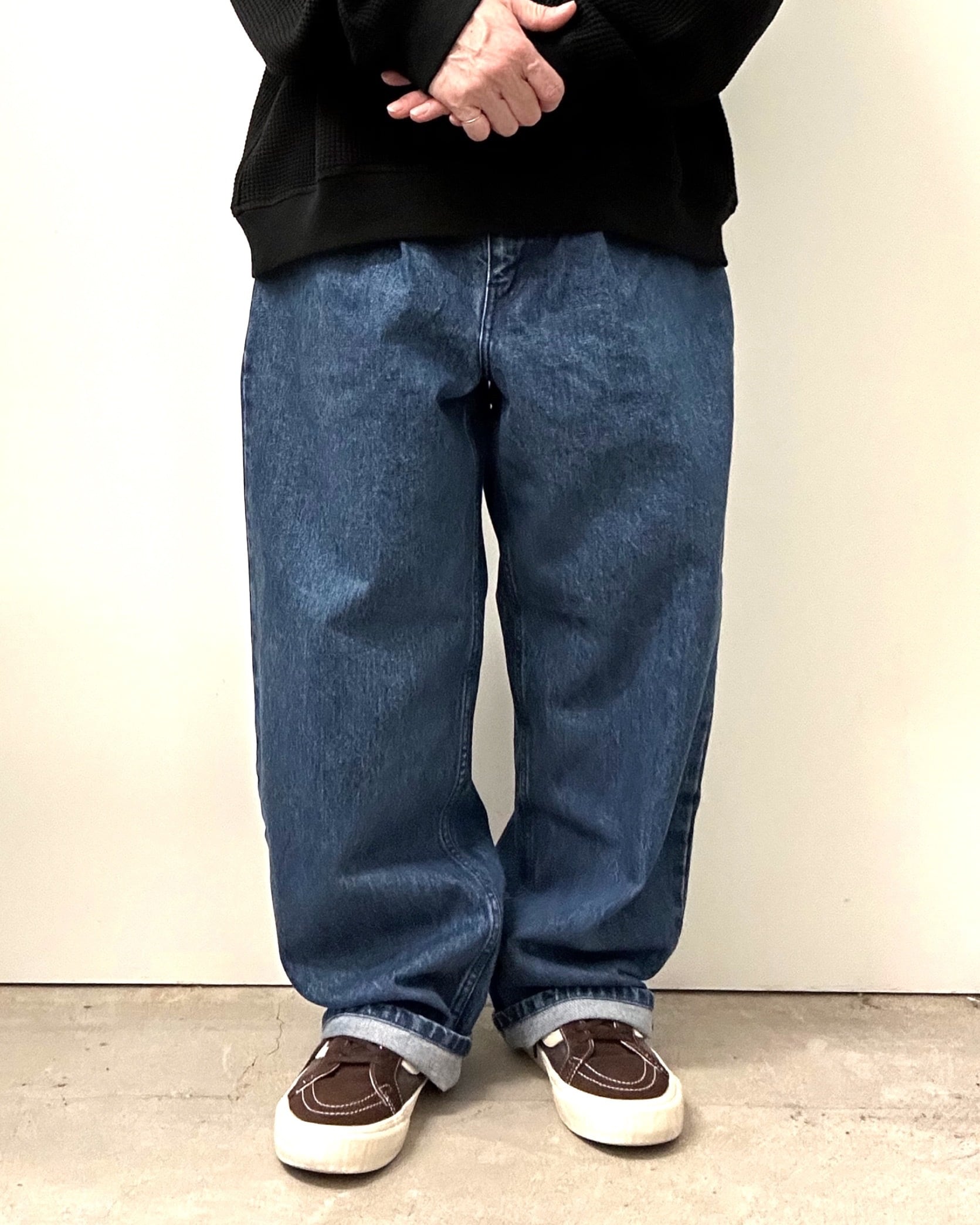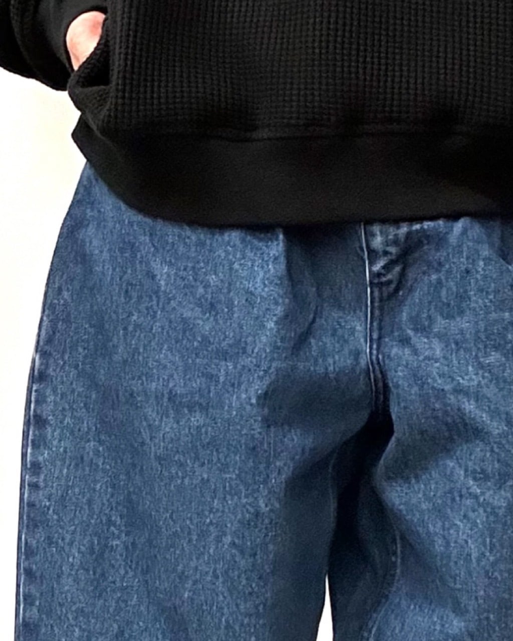 深めのタックを入れ、たっぷり生地を使ったバギーデニム。