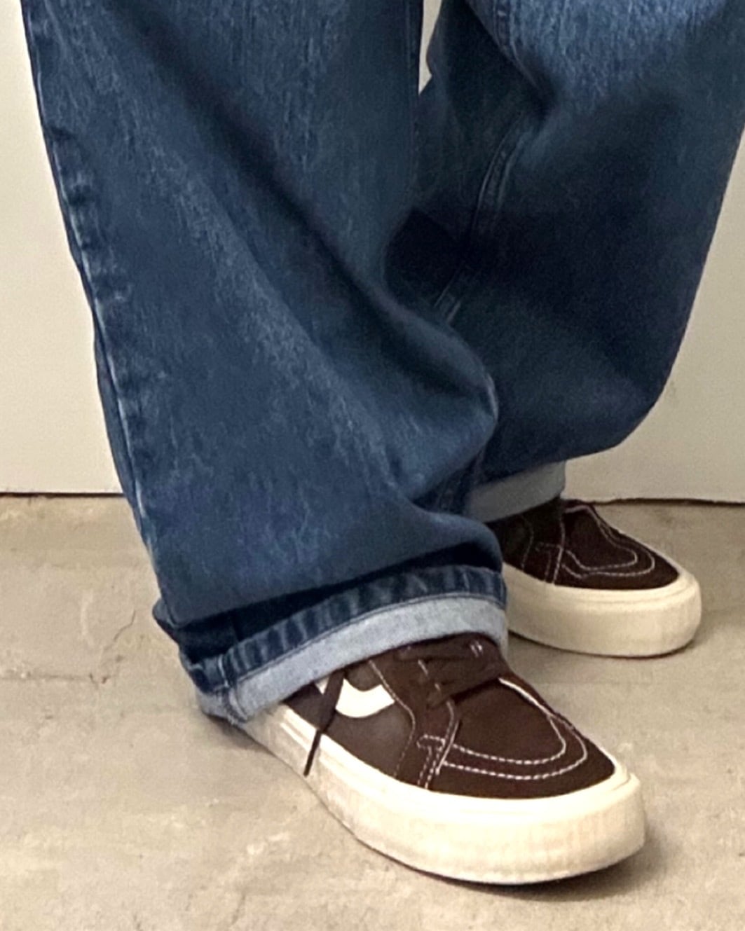 生地は14ozのムラ糸デニムを使用し、癖がないクリーンな表情となっています。