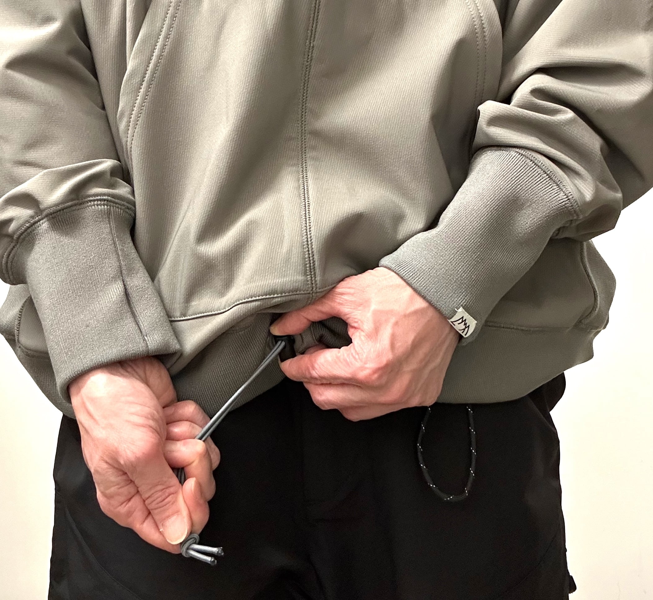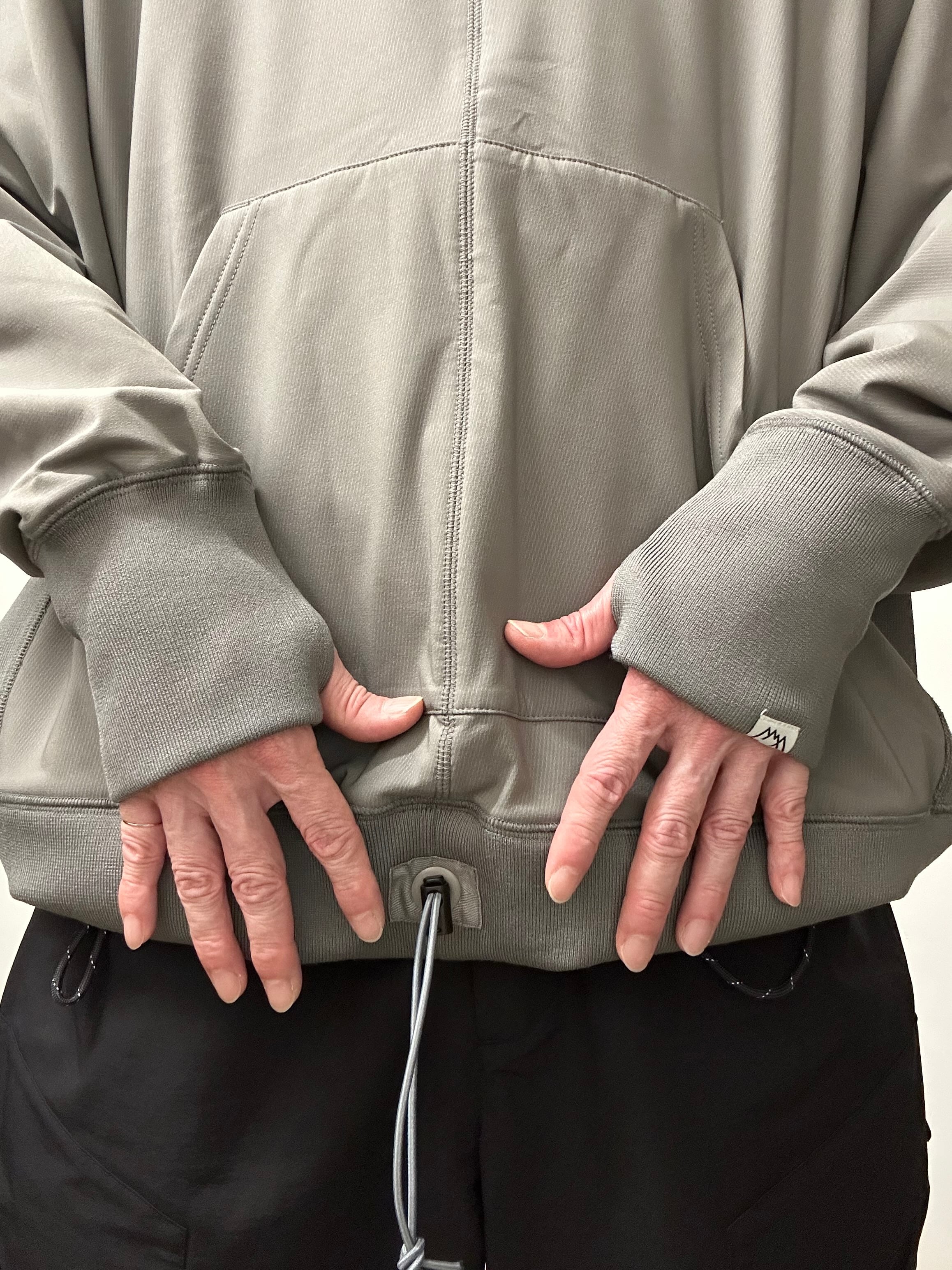両Vのリバースイーブを元に真ん中で割ったソフトシェルのスエットシャツ。