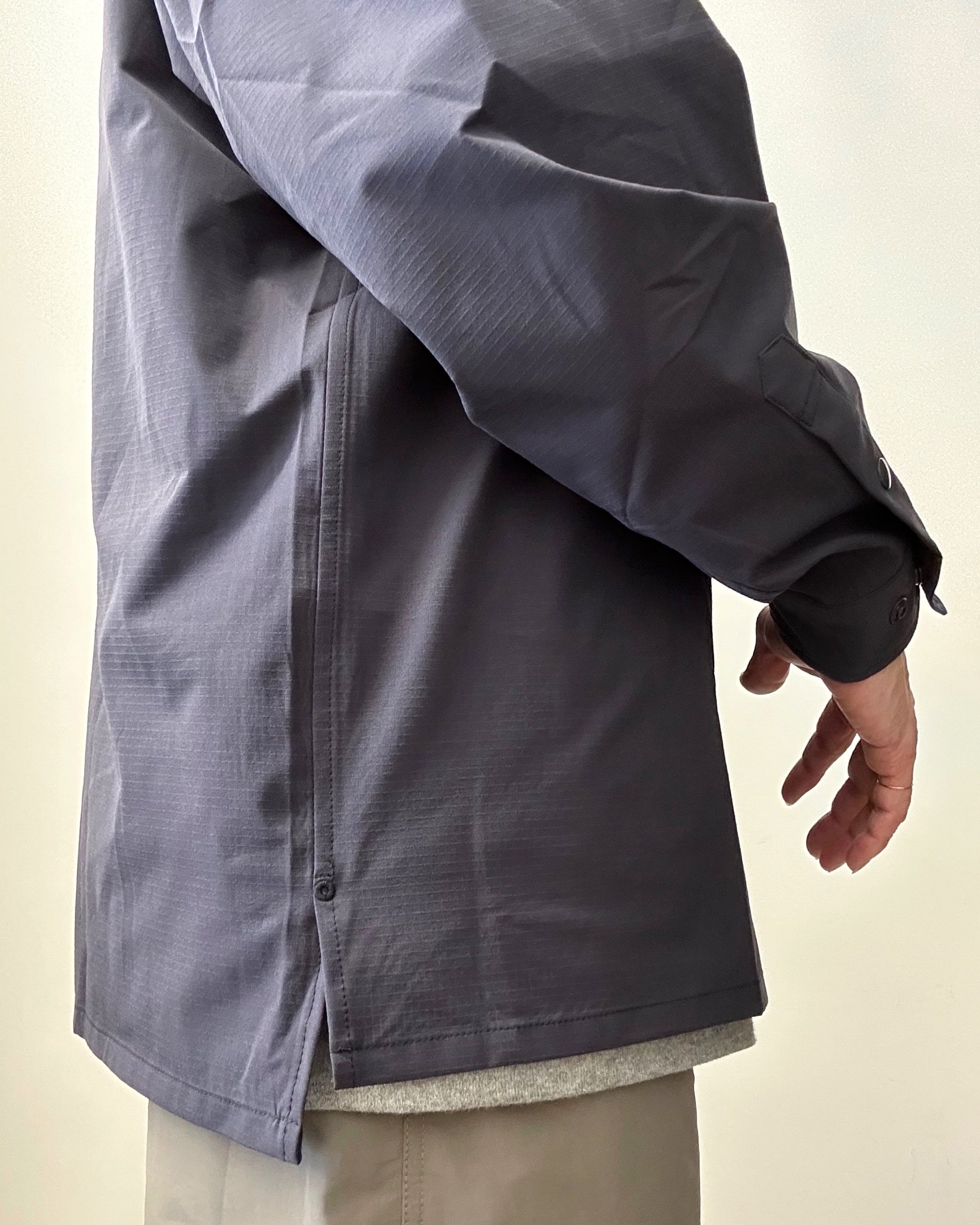 CMFでは珍しいボックスシルエットにし、ドットエアーの生地を使用したことでしわを気にせず着用できる。