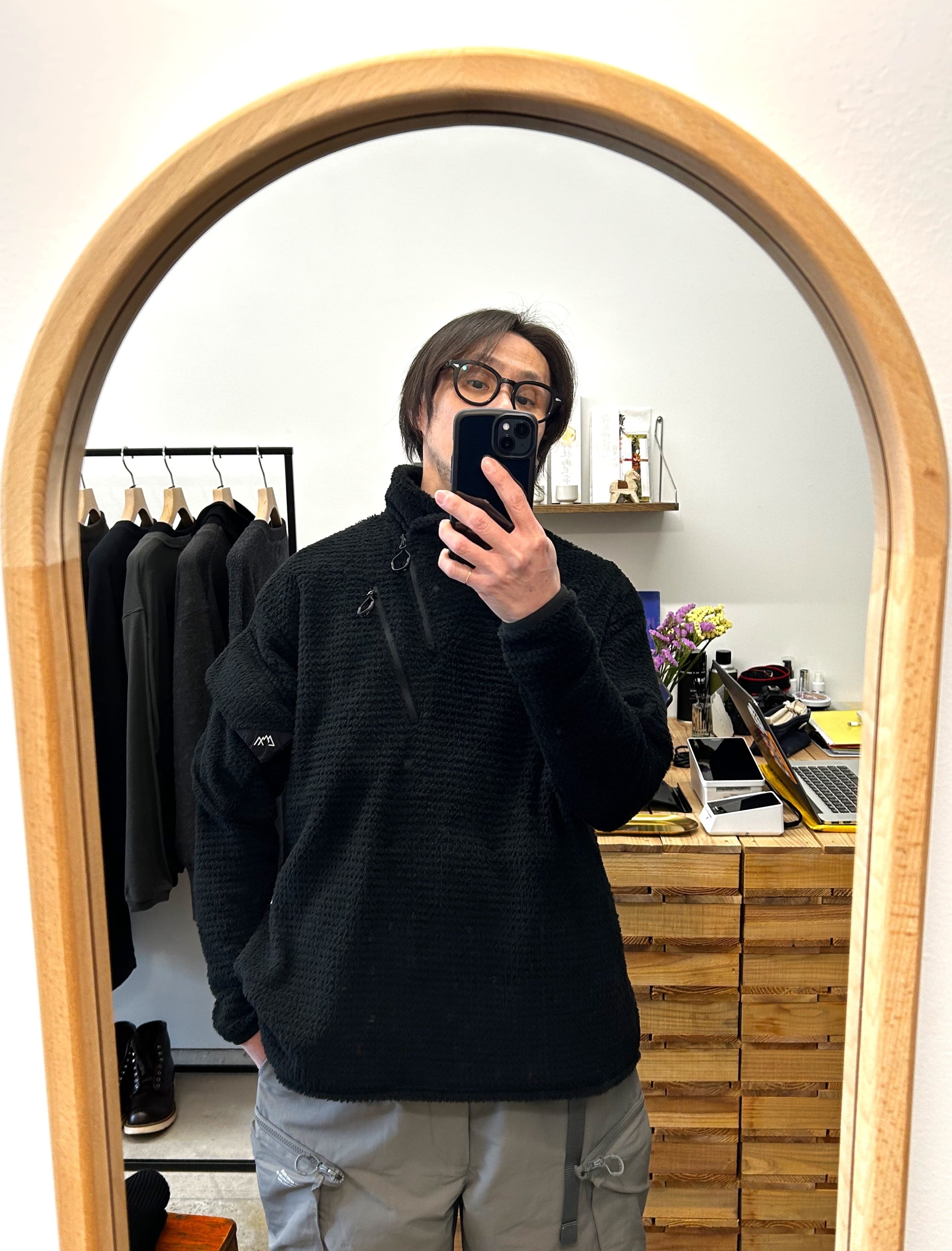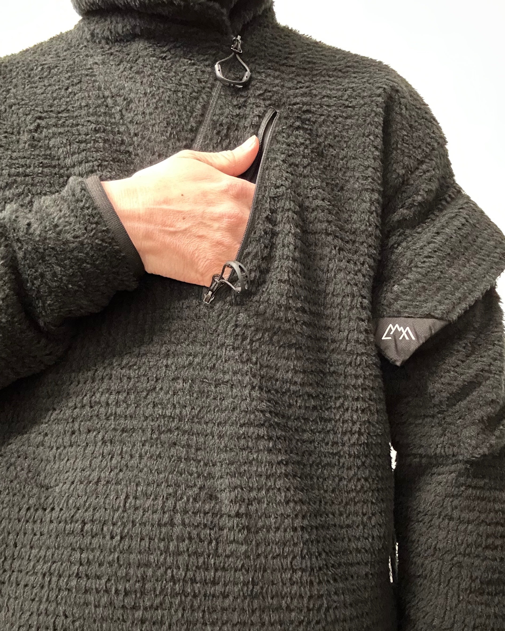 名前の通りSIMPLEに作成したが、1 枚で着た時もインナーに着た時も格好いいを目指して作成した。軽量かつPRIMALOFT(プリマロフト)仕様で、とても温かい!