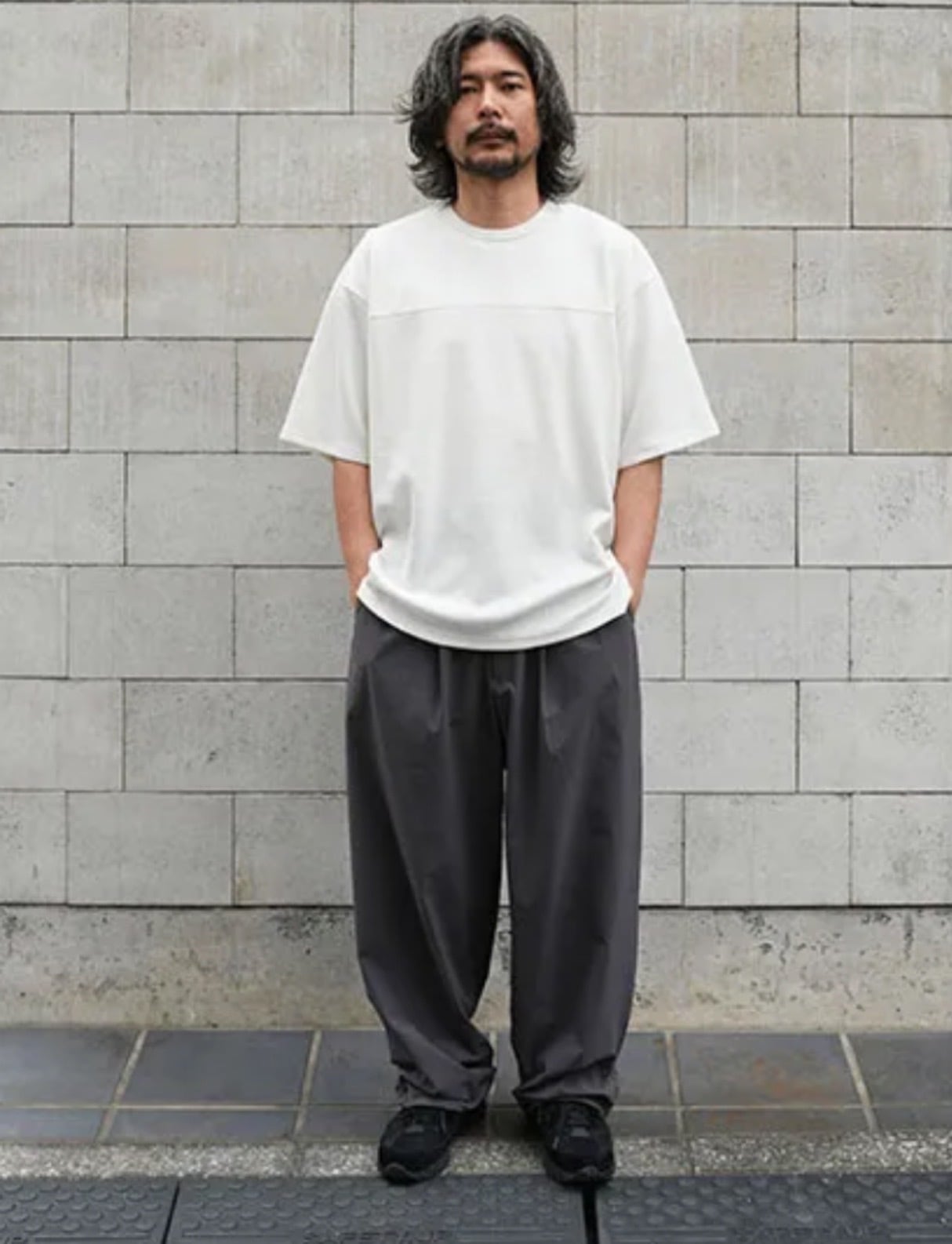 従来モデルよりも太さを持たせたワイドシルエットに仕上げ、裾を絞ることでシルエットの変化も楽しめる一本です。