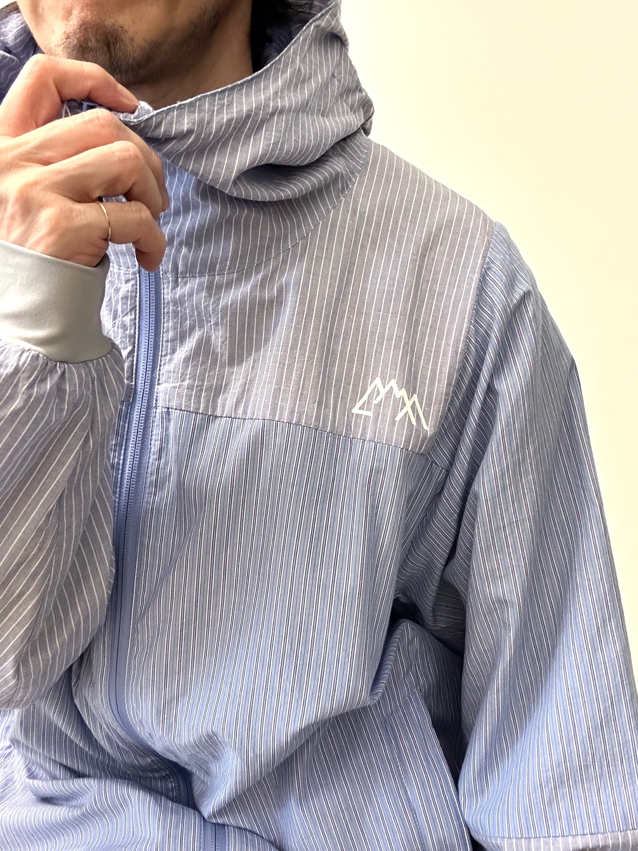 シャツを3レイヤーで作るのではなくシェルの型をシャツで製作した春先や秋まで長期で着用できます。胸と背面の肩部分にCMF LOGOをプリント。BODY裾部分に、ドローコード付きで裾幅も調節可能。