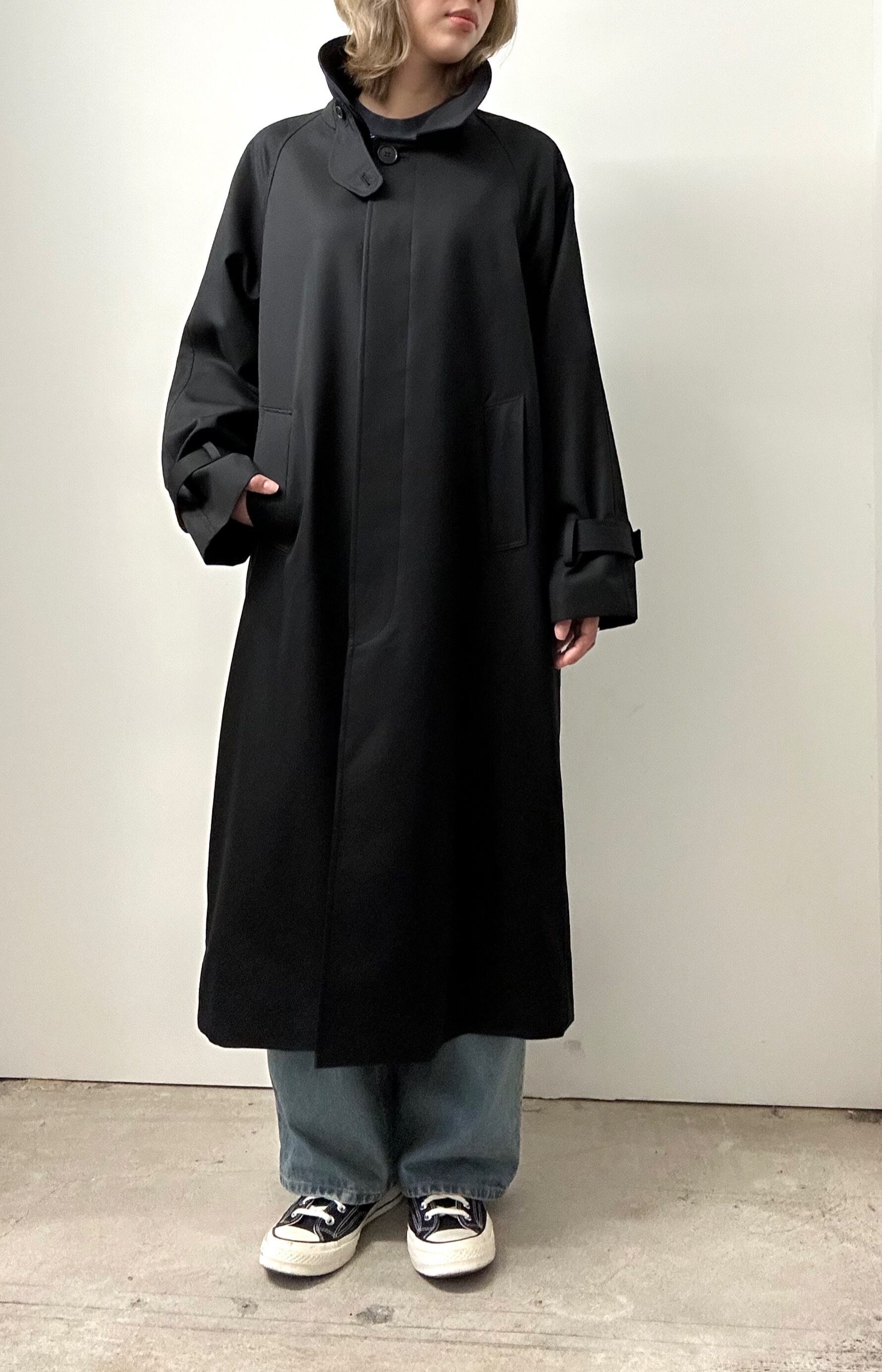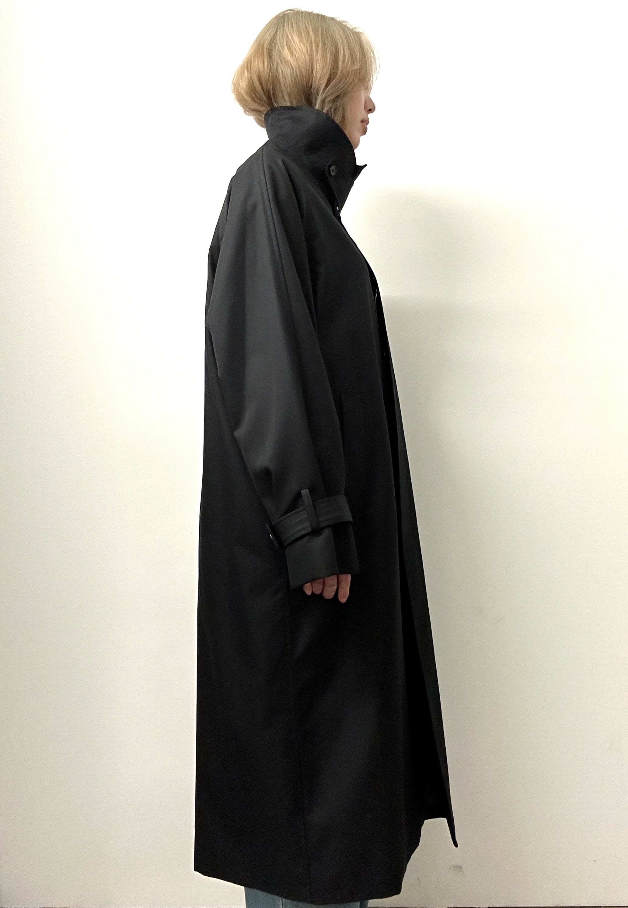総裏仕立てのロング丈でラグランスリーブ、袖口は調節可能なベルトが付いています。