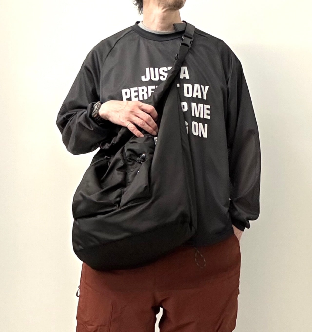 大ぶりなサイズの光沢感のあるナイロンツイルロールバックがリリース。